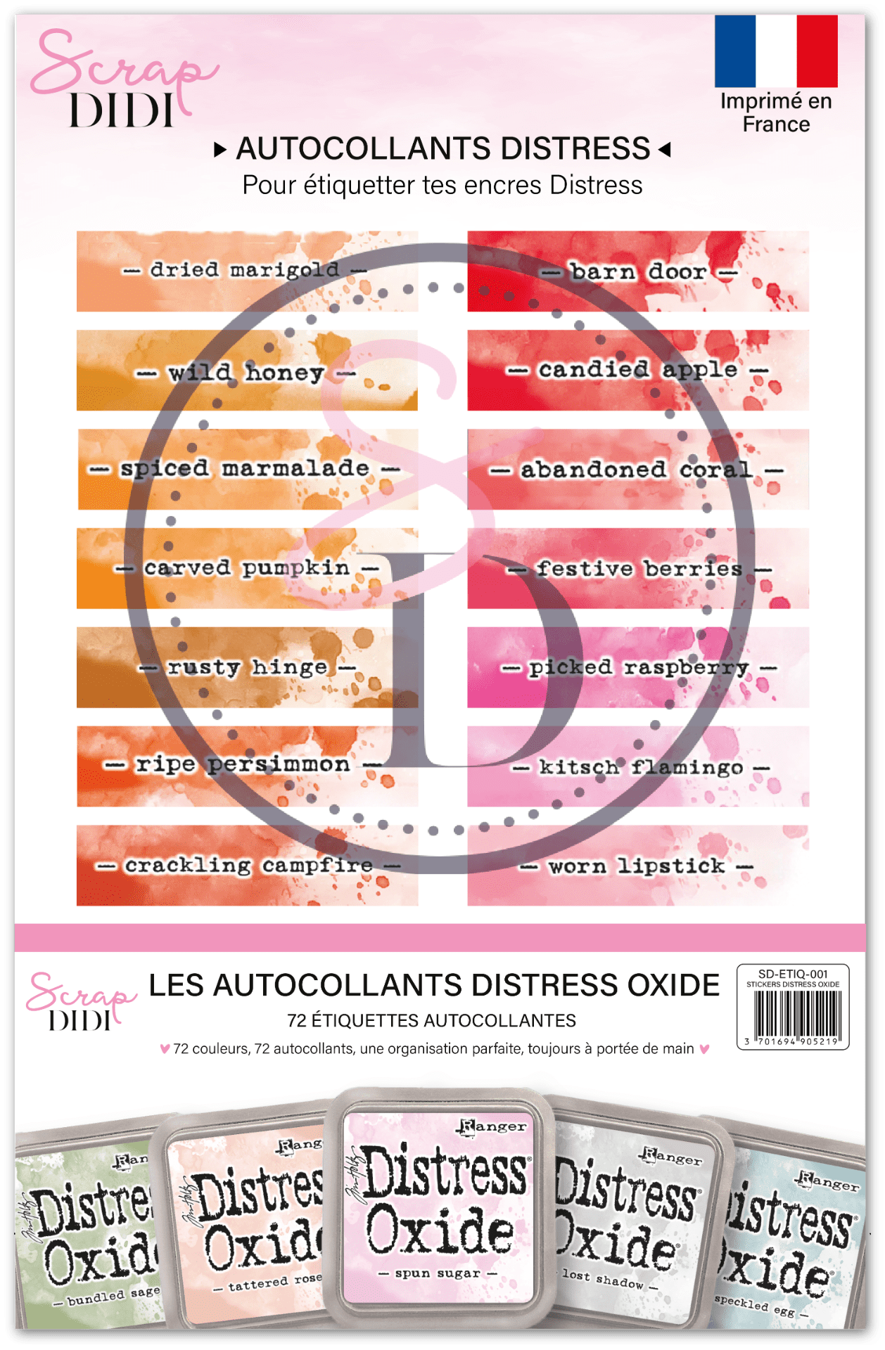 Identifie facilement tes encres avec ces autocollants pour Distress Oxide. Parfaits pour organiser ton matériel scrapbooking de façon claire et efficace.