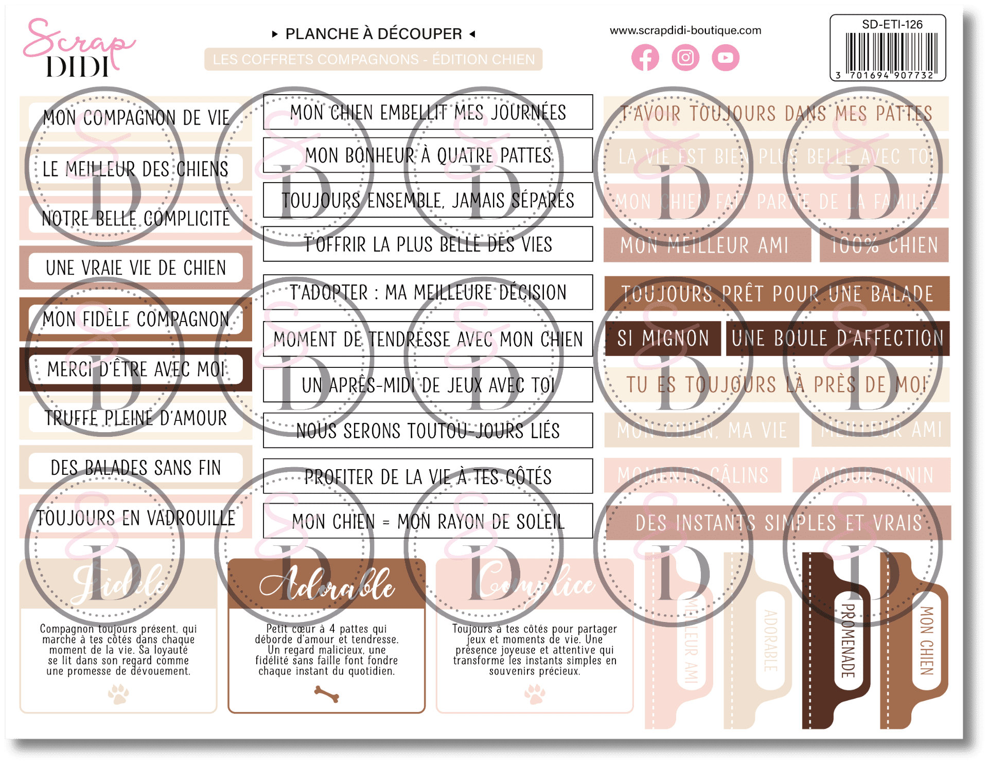 Le coffret “Compagnon chien” est une véritable invitation à créer autour de ton animal préféré. Pensé pour les passionné(e)s de scrapbooking et les amoureux des chiens, ce kit complet te permet de raconter vos plus belles aventures avec douceur et créativité.