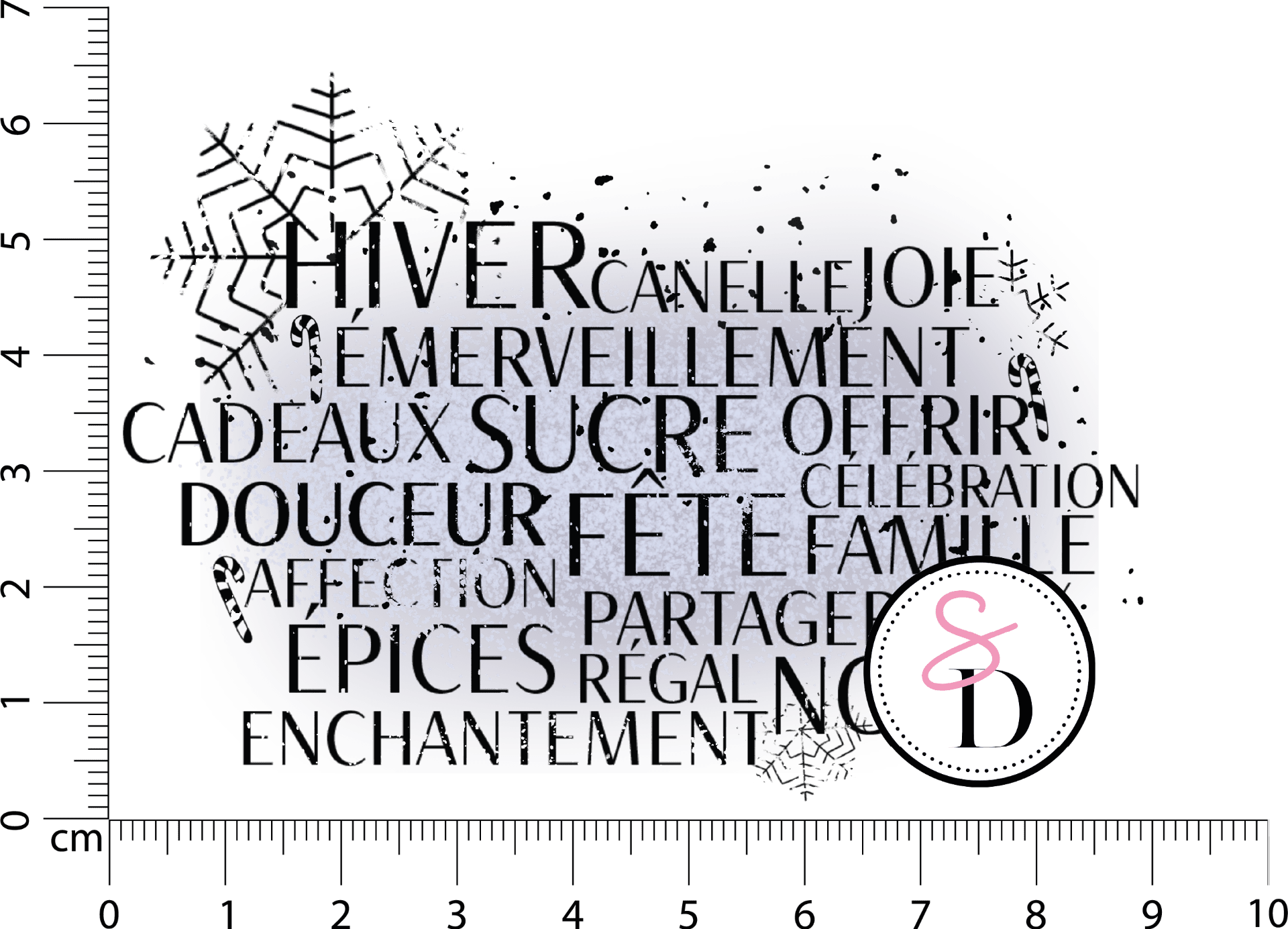 Tampon caoutchouc – Fond texte Flocon – Douceurs d’hiver