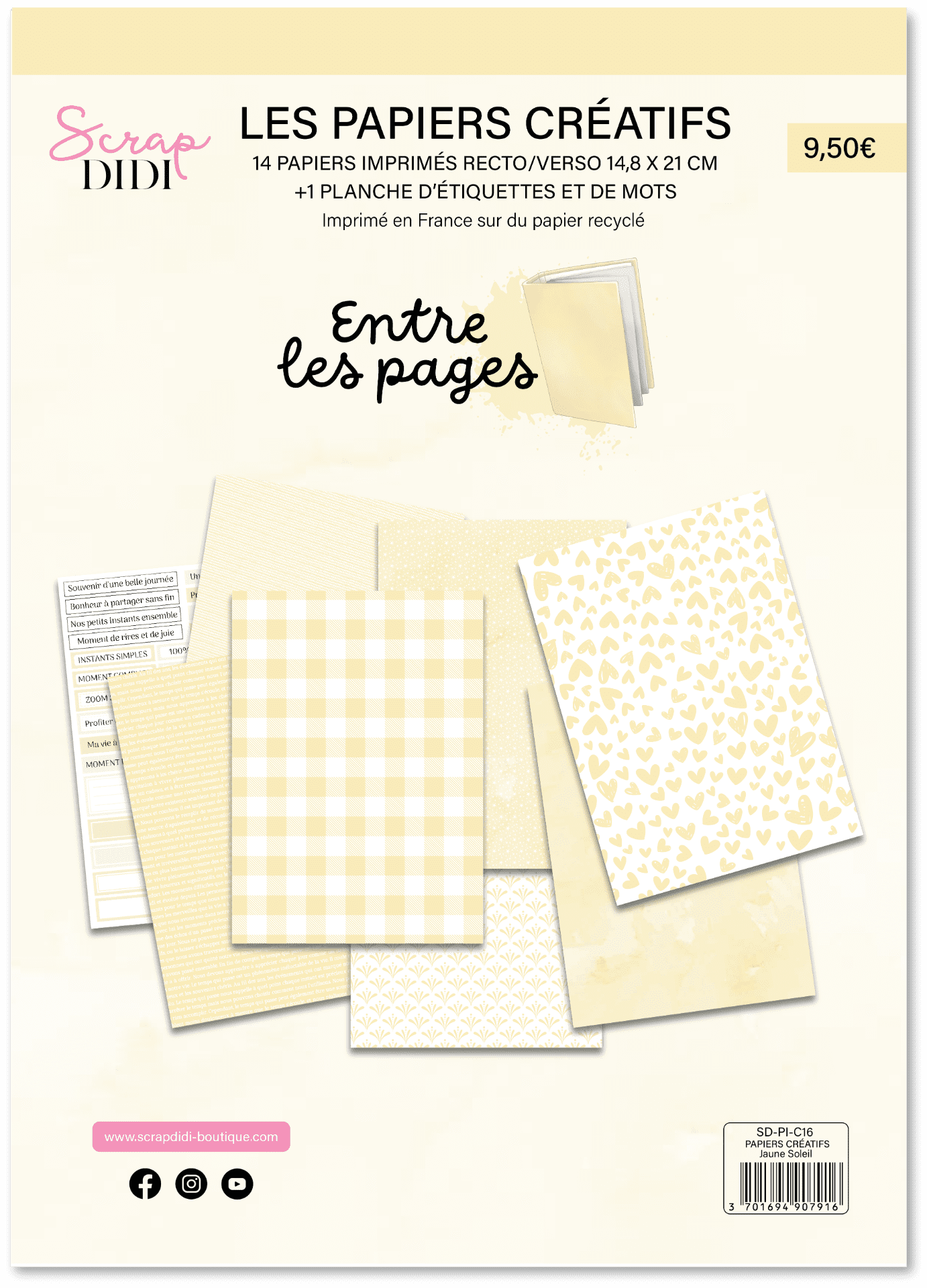 Kit 14 papiers scrapbooking - JAUNE SOLEIL – Gamme Entre les pages