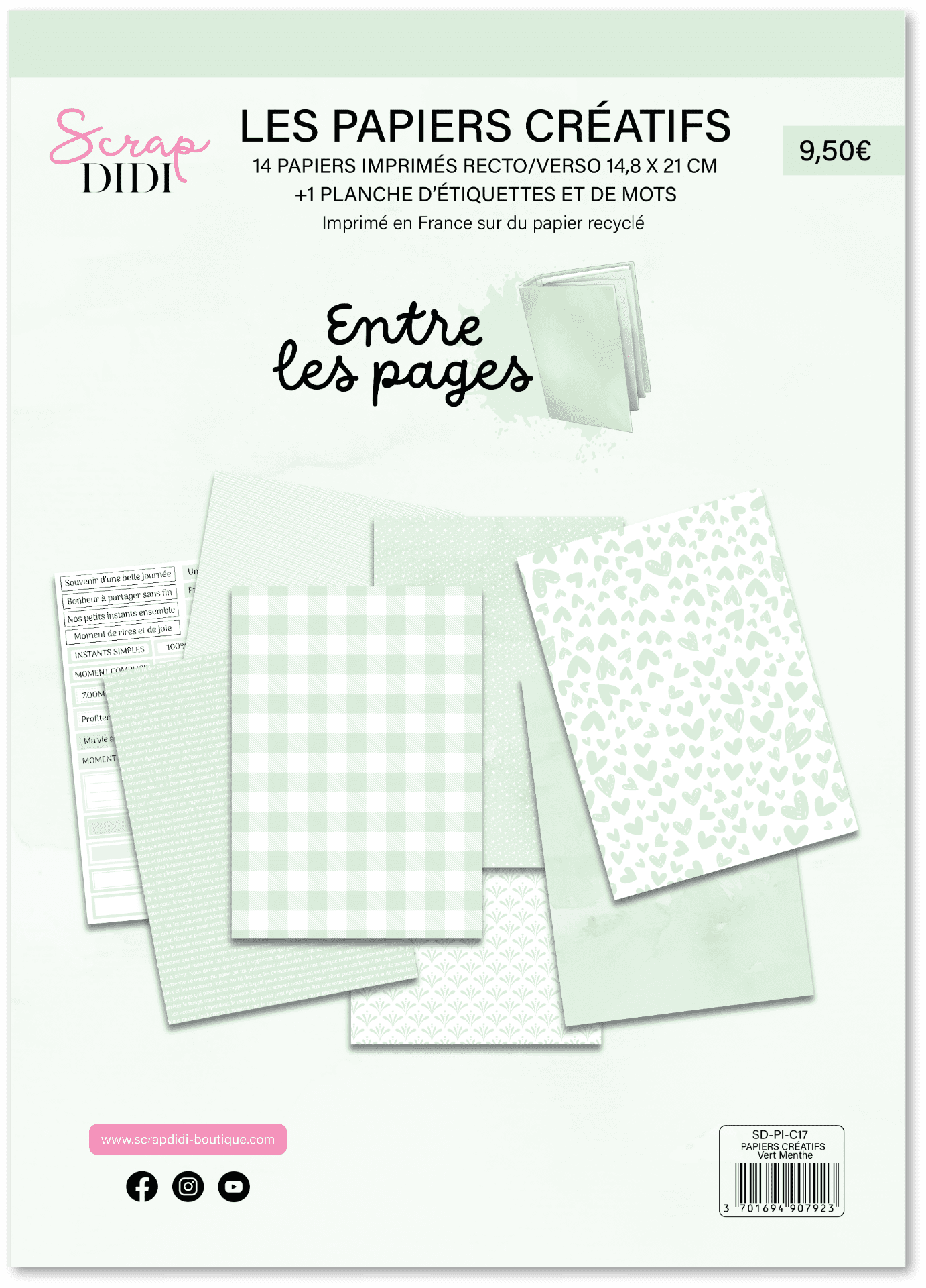 Kit 14 papiers scrapbooking - VERT MENTHE – Gamme Entre les pages