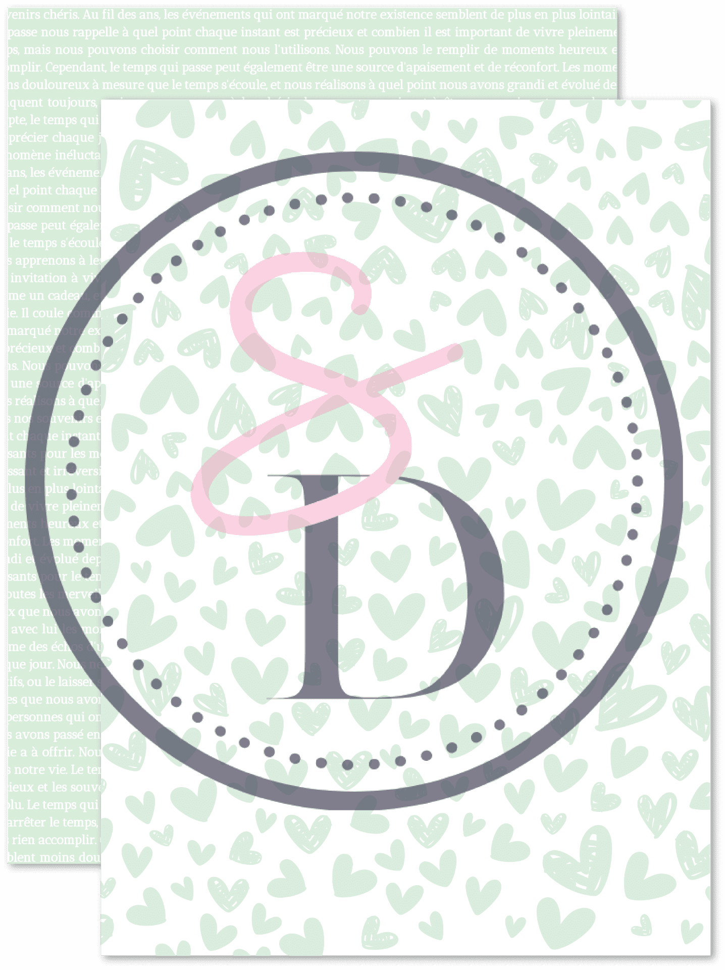 Crée des pages élégantes avec ce kit de 14 papiers scrapbooking recto verso vert menthe au format 14,8 x 21 cm.