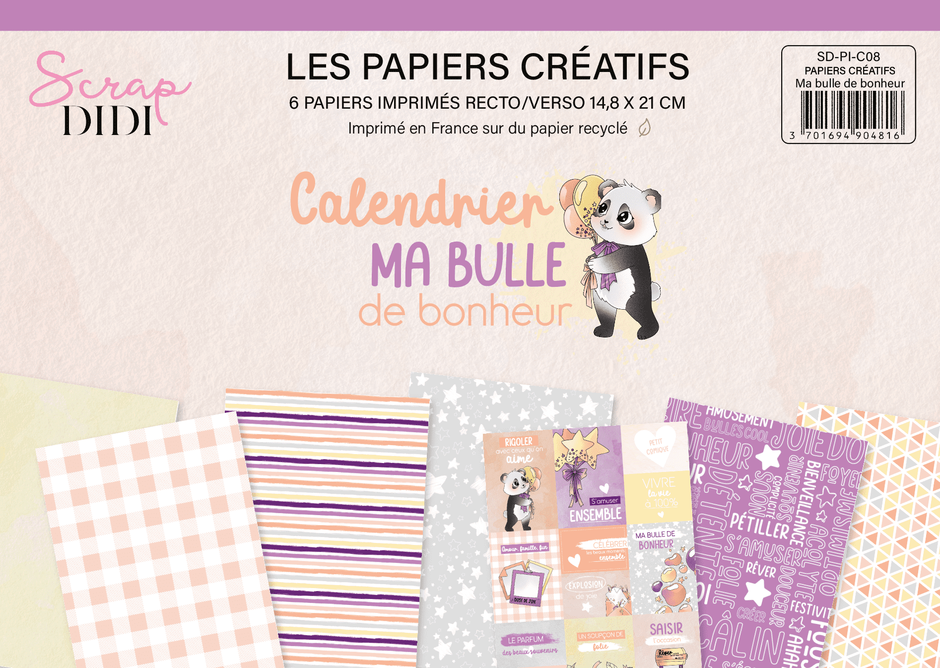 Lot de 6 papiers créatifs imprimés A5 recto/verso – Ma bulle de bonheur