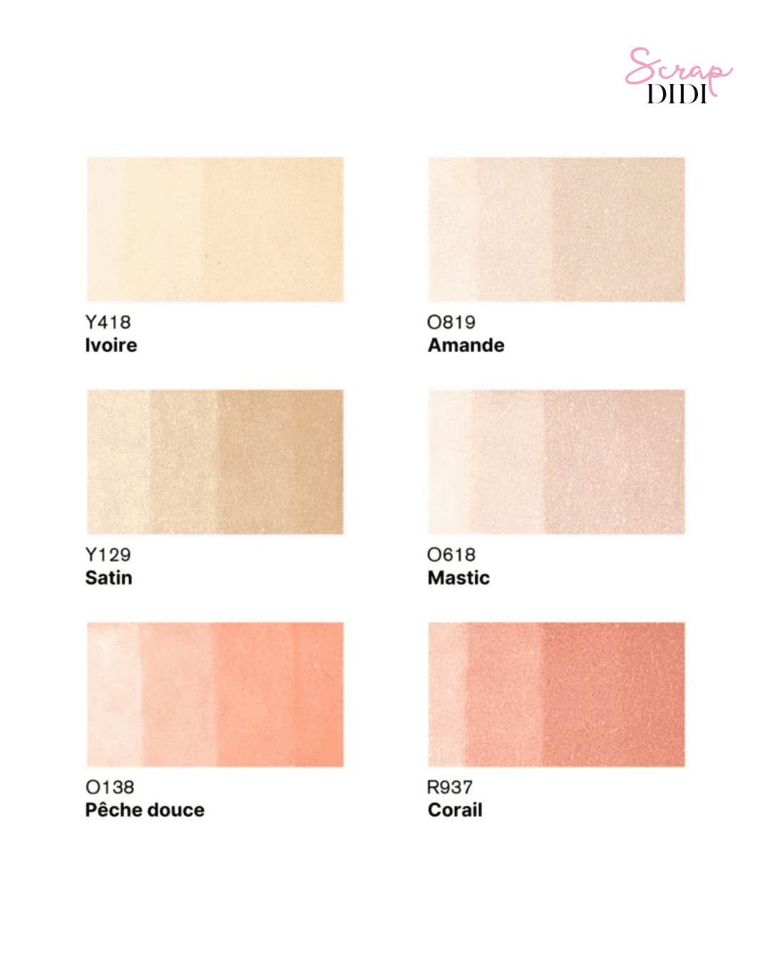 Ce set contient 6 nuances de tons de chair soigneusement sélectionnées pour :