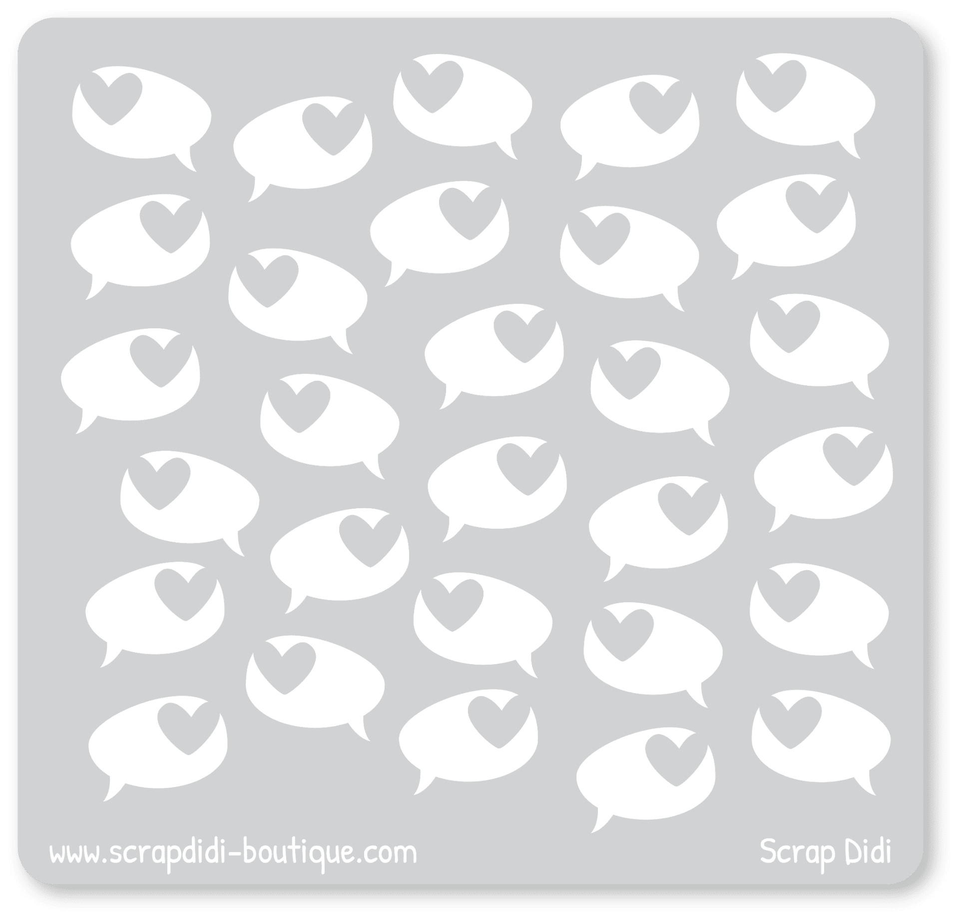 Le petit pochoir “Bulles d’amour” est parfait pour créer des fonds doux et légers sur tes créations.