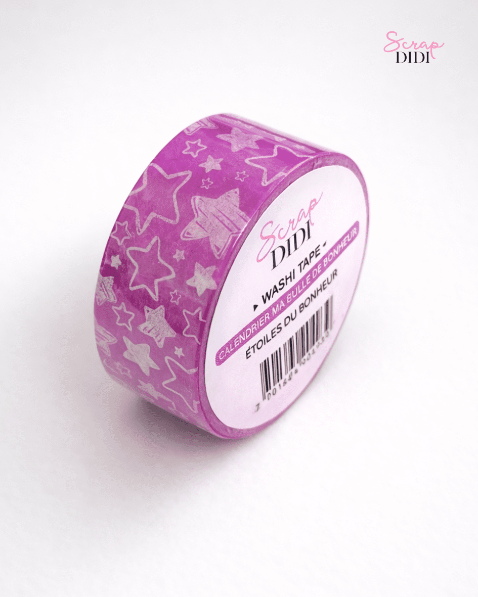 Un washi tape violet à motif étoiles blanches parfait pour décorer tes créations en un clin d’œil.
