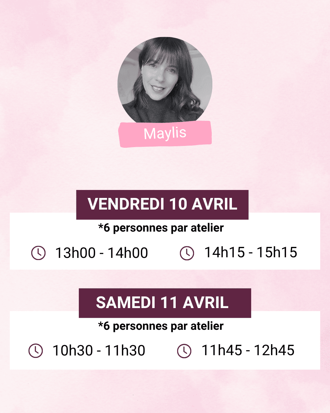 *6 personnes par ateliers (16 ans minimum)