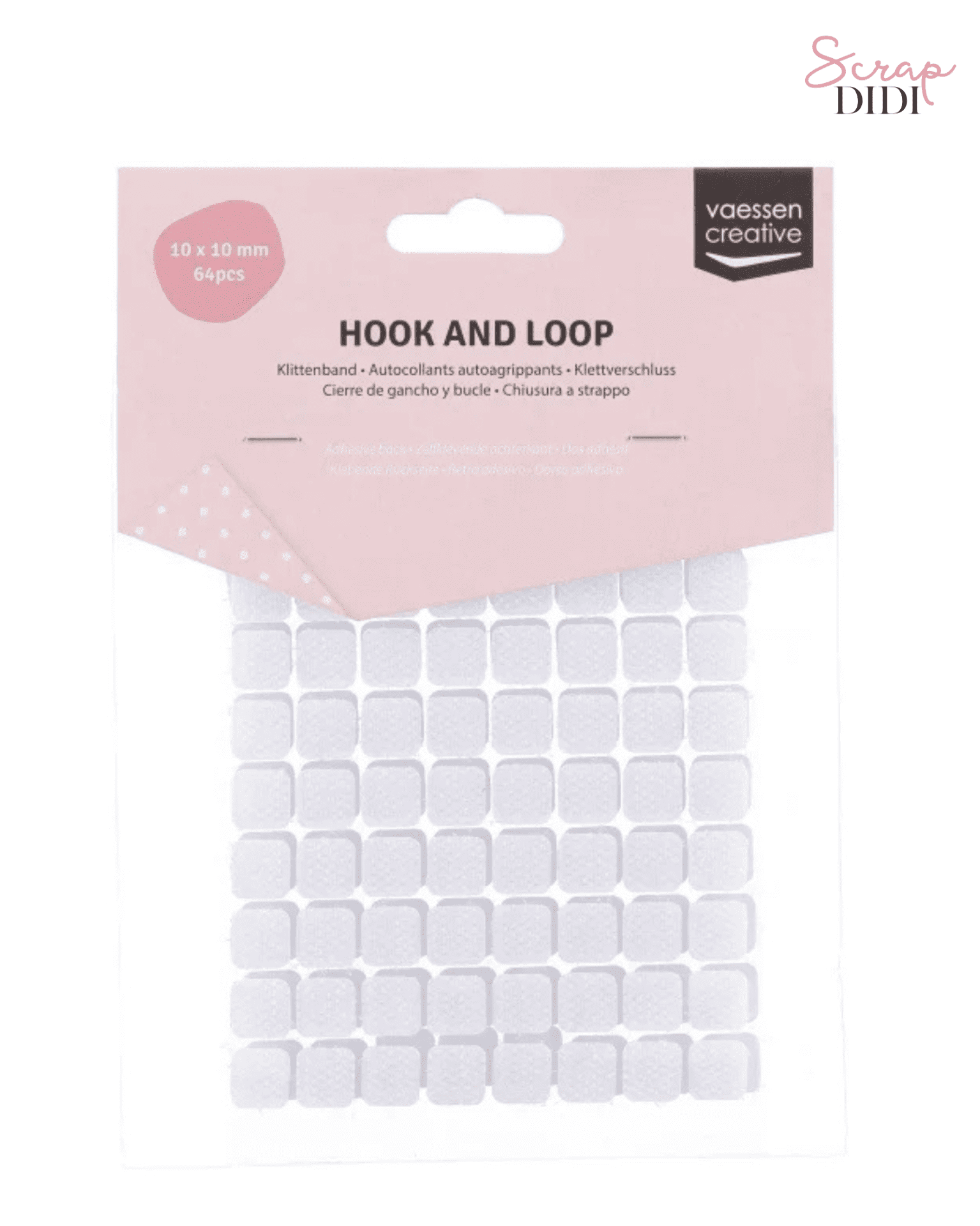 Les Autocollants Autoagrippants 10x10mm – 64 pièces sont parfaits pour créer des systèmes d’ouverture et de fermeture pratiques dans tes projets scrapbooking et DIY.