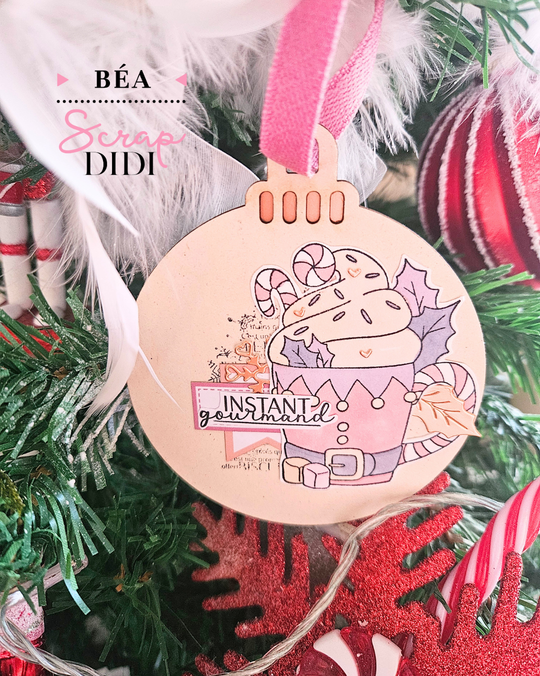 Pour ma première création avec la box novembre–décembre “Douceurs d’hiver”, j’ai choisi de customiser une boule en carton bois.