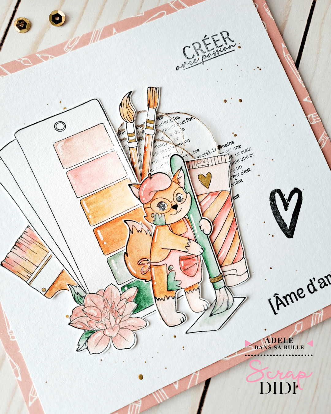Parce qu’il n’y a rien de plus beau que de créer avec passion 💗 Voici une carte scrapbooking au format 15x15 cm, inspirée de la collection “Au pays des artistes”, où se mêlent pinceaux, fleurs et éclats de couleurs. Chaque élément évoque la joie de créer, la légèreté du geste et la poésie de l’atelier.