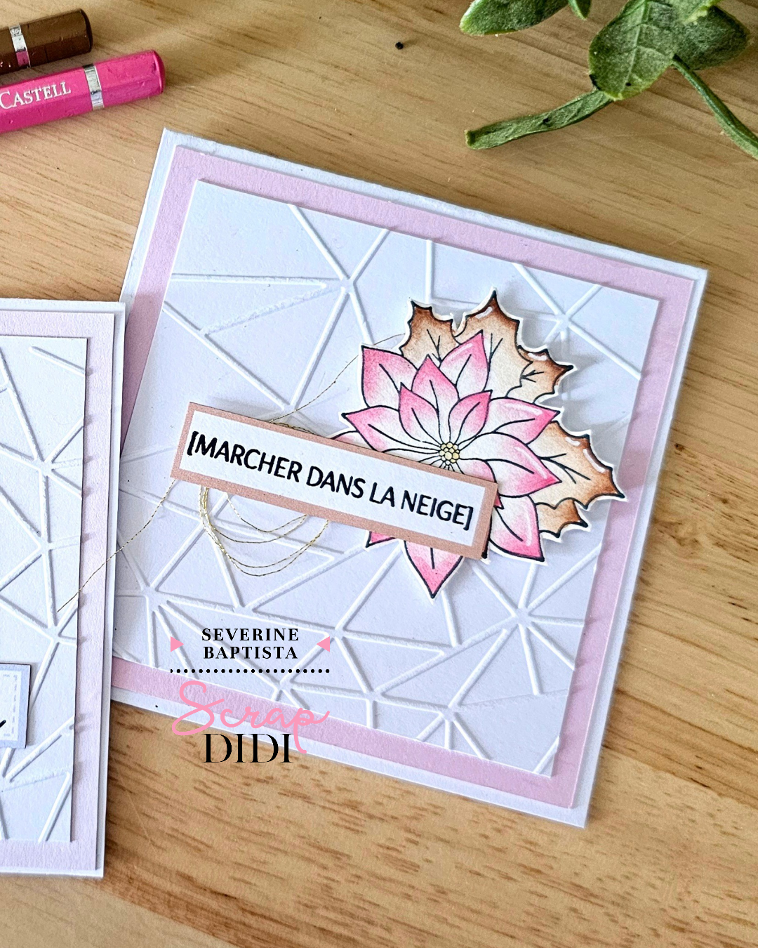 Les fonds ont été réalisés à l’aide d’une plaque d’embossage. Cette technique simple et rapide permet d’apporter du relief et de la texture tout en gardant une base élégante et structurée.