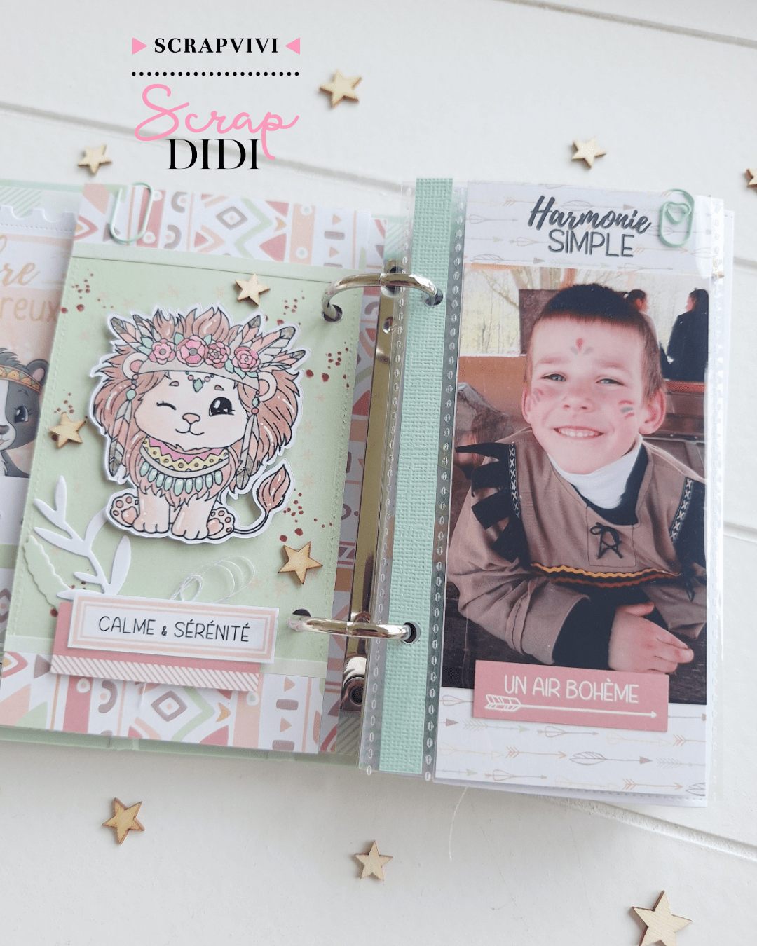 Classeur scrap Esprit libre et solaire avec collection Rêveries Bohémiennes et décoration bohème