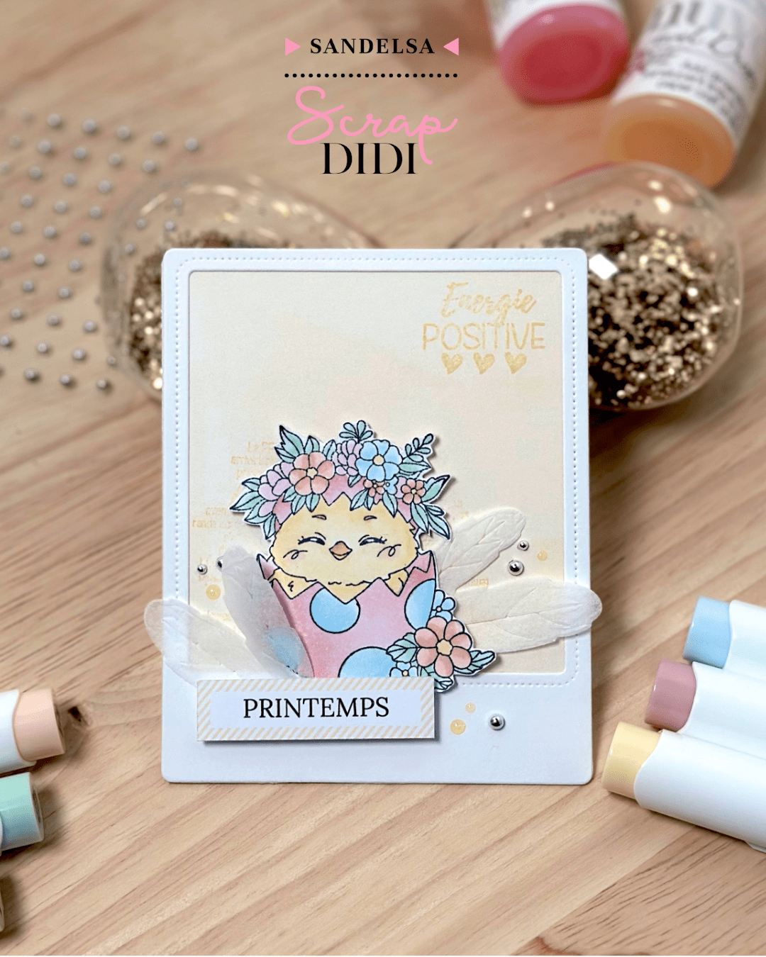 Ce duo de polaroïds met en scène une ambiance printanière pleine de douceur. Les papiers effet aquarelle apportent légèreté et délicatesse à la composition.