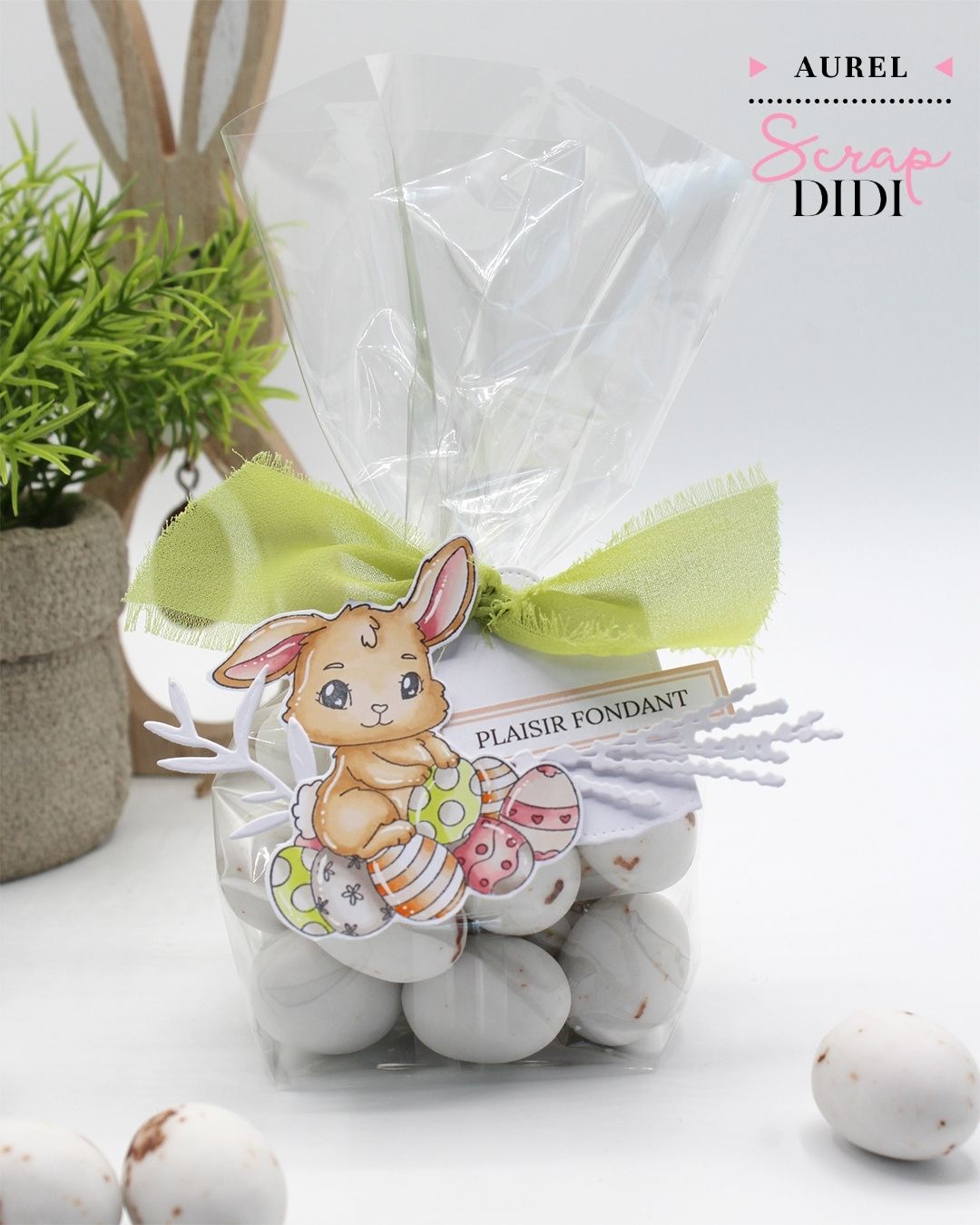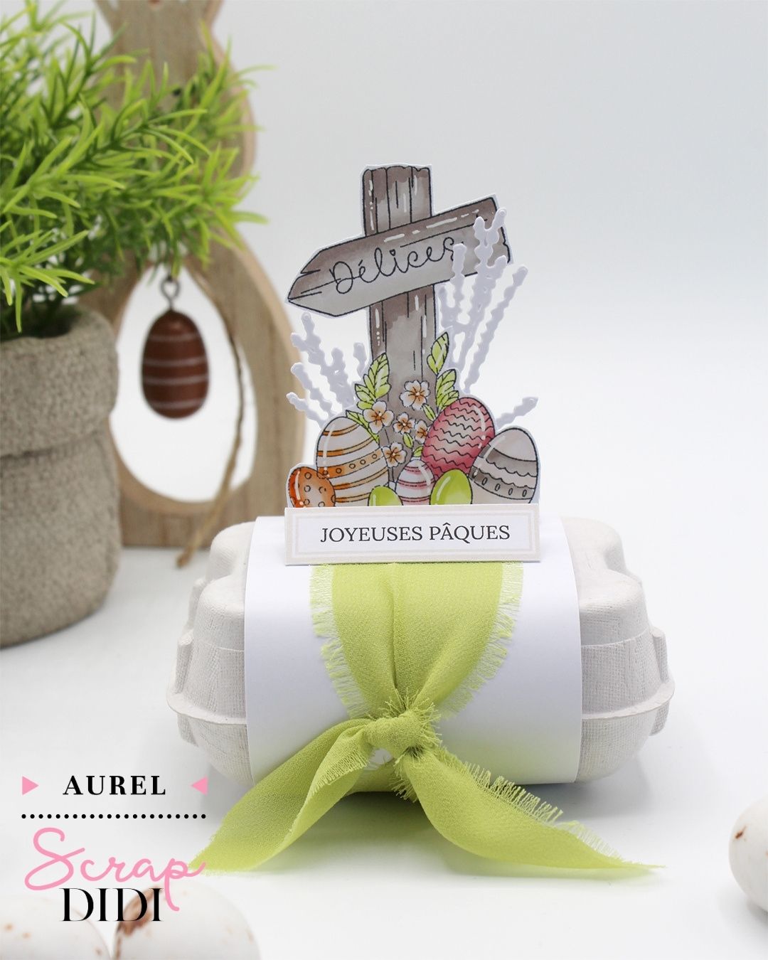 Packagings scrap de Pâques avec boîte d’œufs et sachet cristal décorés