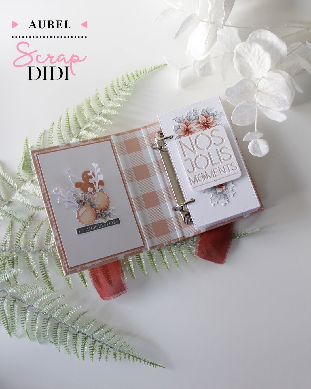 Pour la structure de ce mini album, j’ai utilisé le classeur obtenu le 25 décembre dans le calendrier de l’Avent Scrap Didi..