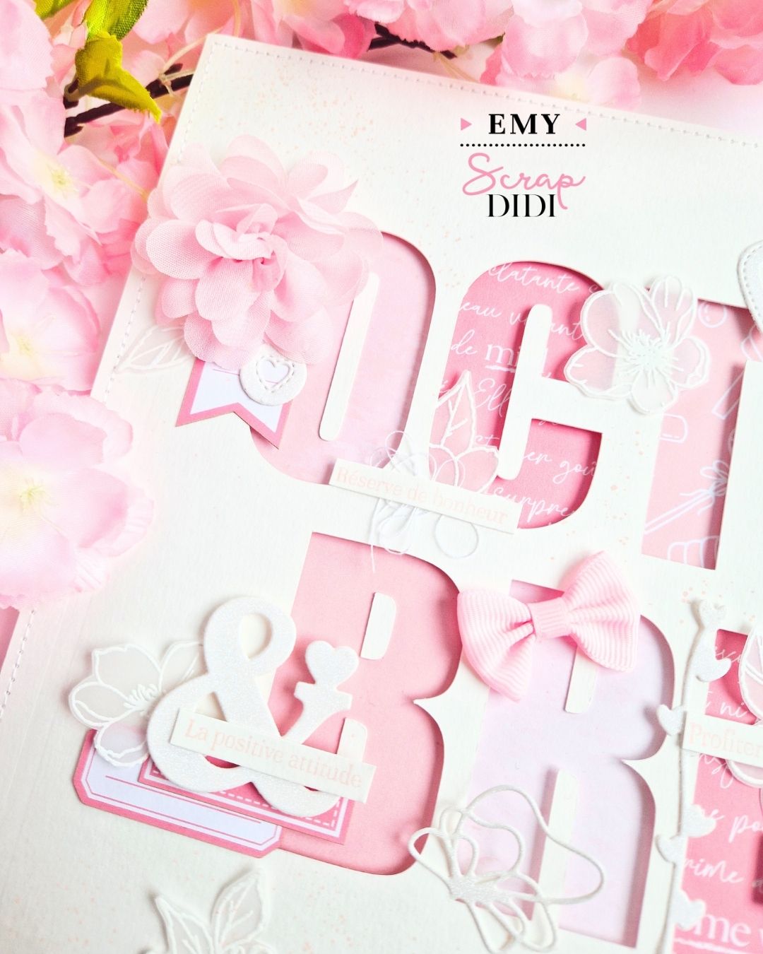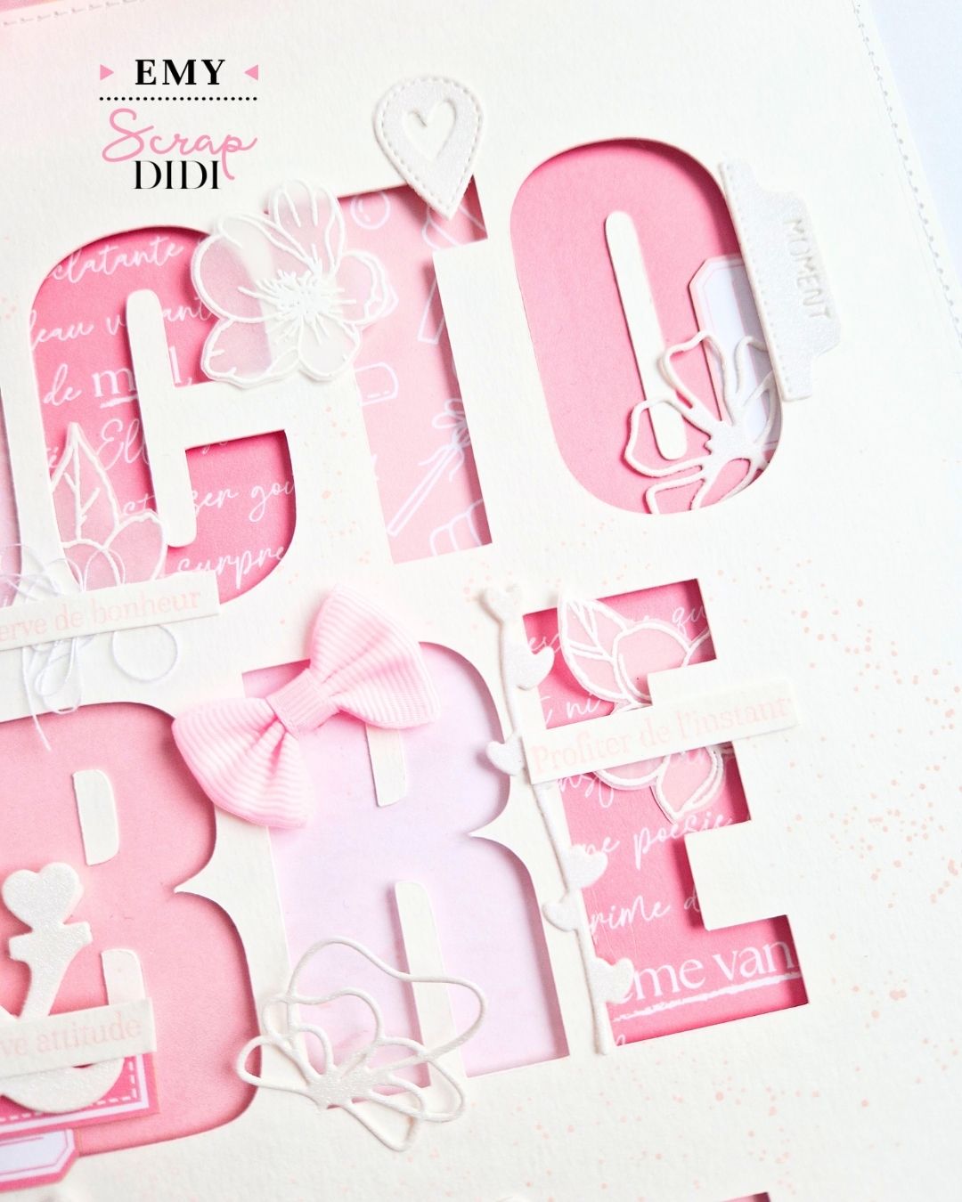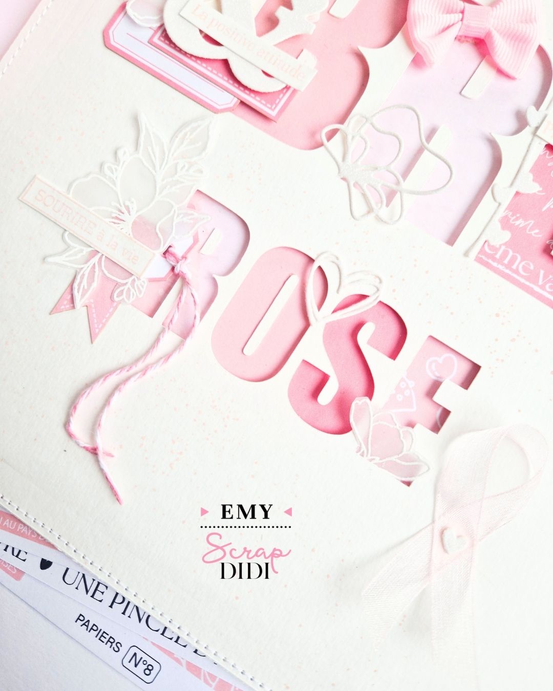 À l’occasion de la campagne Octobre Rose, voici une page de scrapbooking toute en douceur, pensée autour du rose comme symbole de soutien. C’est une création monochrome à fort impact visuel, idéale pour marquer un événement, rendre hommage ou simplement s’exprimer avec le cœur.