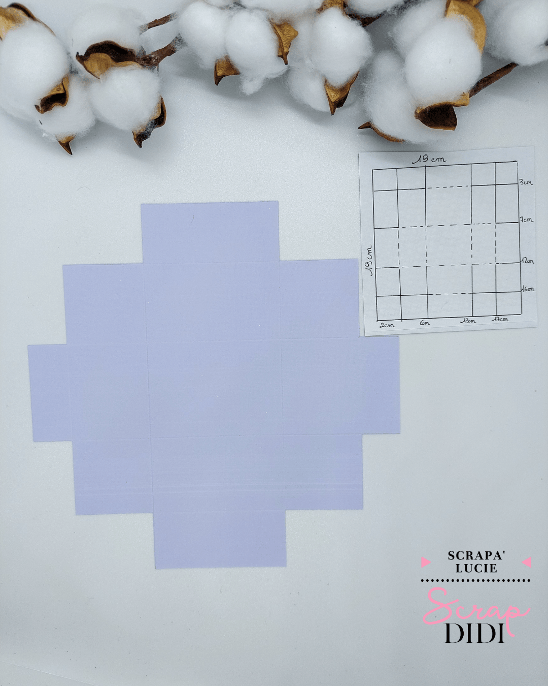 Pour cette réalisation, découpe un carré de 19 cm x 19 cm.