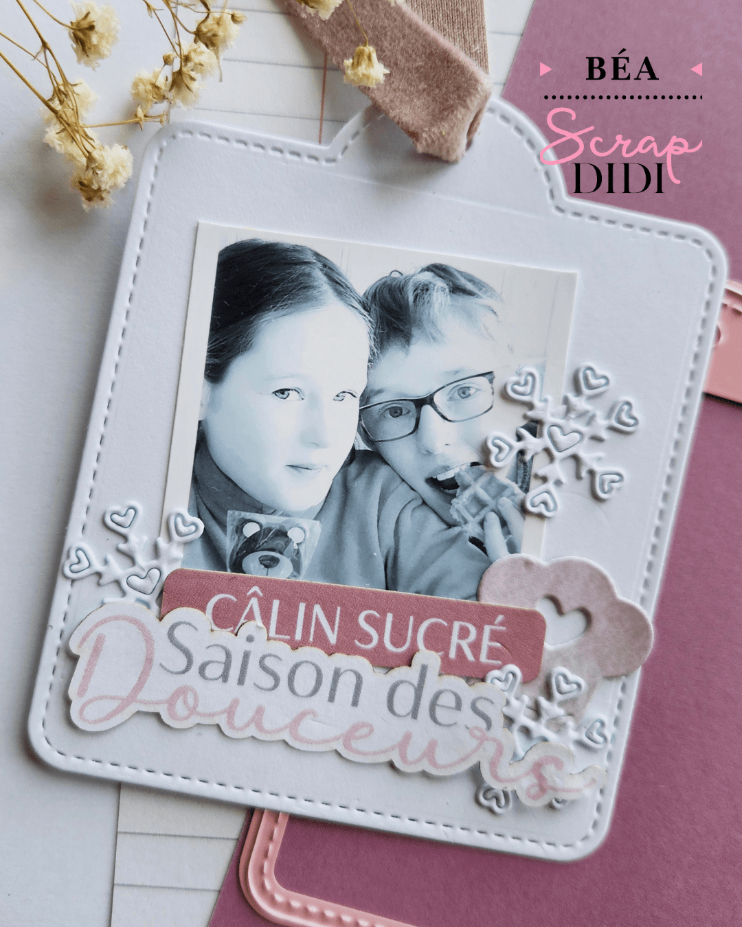 Voici une nouvelle création réalisée à partir de la box novembre–décembre “Douceurs d’hiver” : un tag “Saison des douceurs”, parfait pour mettre en valeur une photo et créer un souvenir gourmand et hivernal.