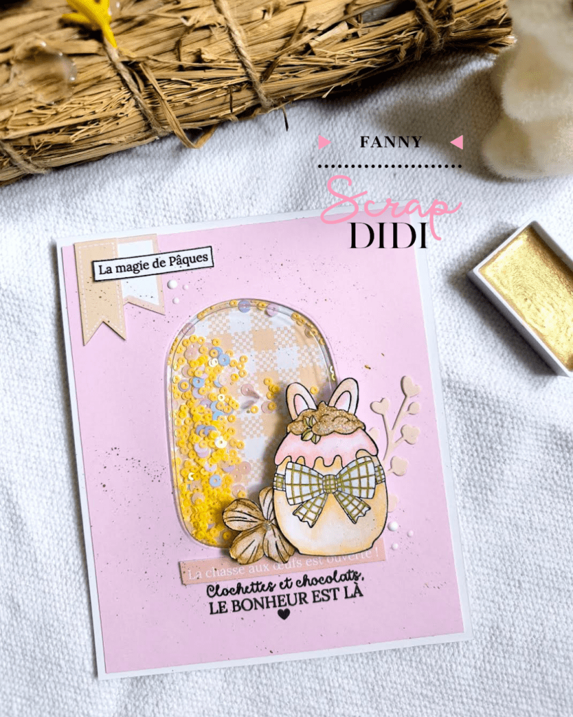 Cette carte shaker a été réalisée avec la nouvelle capsule « Les Trésors de Pâques – nouvelle récolte ». Un univers gourmand et festif, parfait pour célébrer Pâques avec douceur.