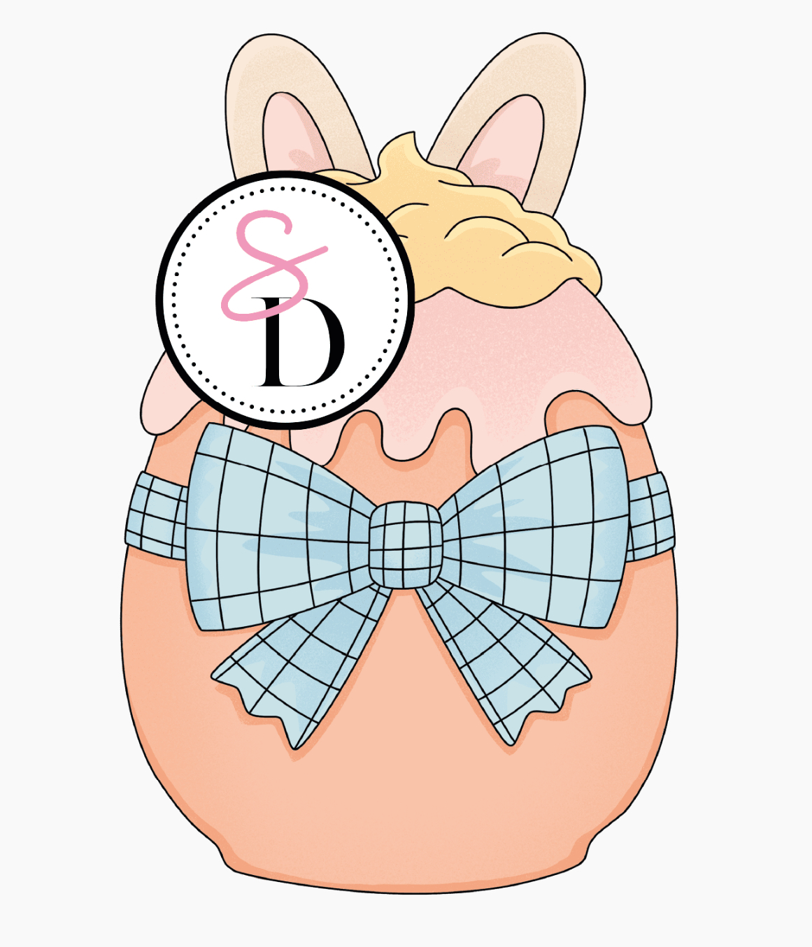 La planche de tampons « clochettes et chocolats » ainsi que le tampon « œuf gourmand » apportent une touche sucrée et ludique à la composition.