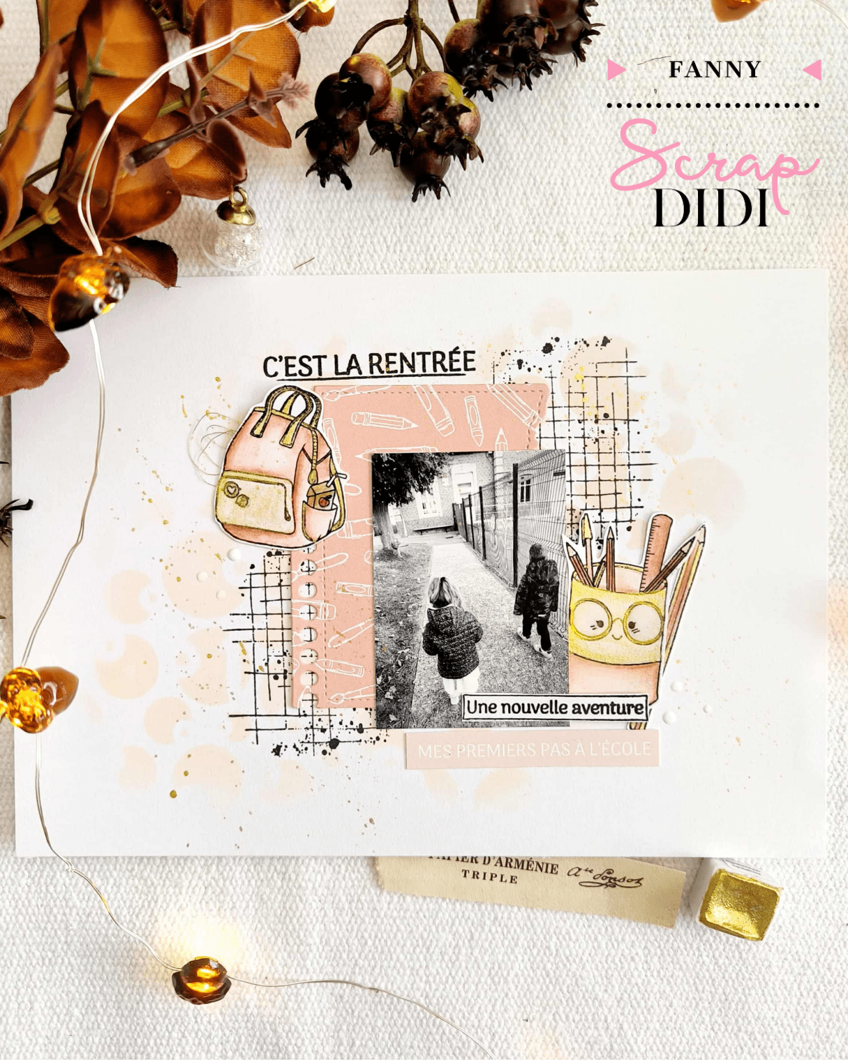 Entre les encres pastel, les tampons délicats et les petits détails dorés, elle capture à merveille la joie simple de la première rentrée.