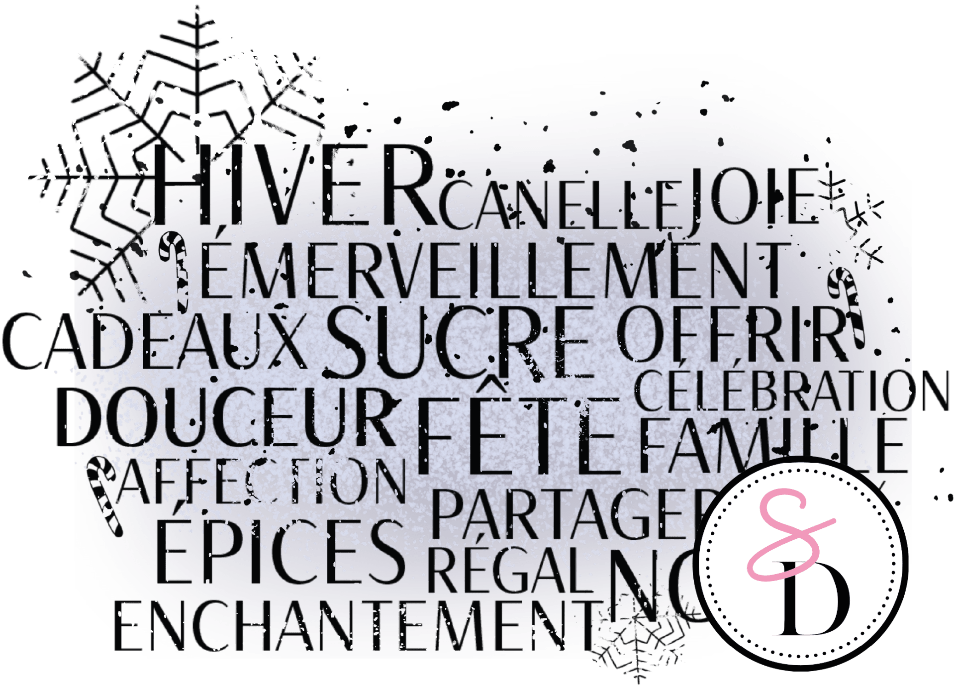 Les tampons (poinsettia, lutin, cadeaux…) ont été colorisés aux crayons aquarellables, pour rester dans un rendu doux et harmonieux.