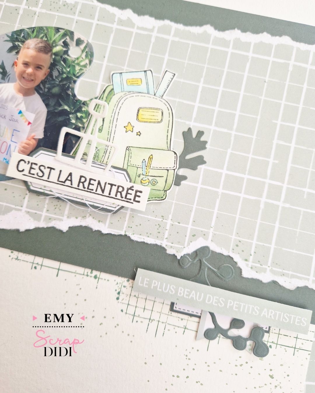 Coucou 🎒✨ Aujourd’hui, je vous présente une page de scrapbooking réalisée avec la collection “Au pays des artistes”. Cette création mêle couleurs douces, tampons aquarellés et découpes précises, pour retranscrire toute la poésie de la rentrée scolaire.