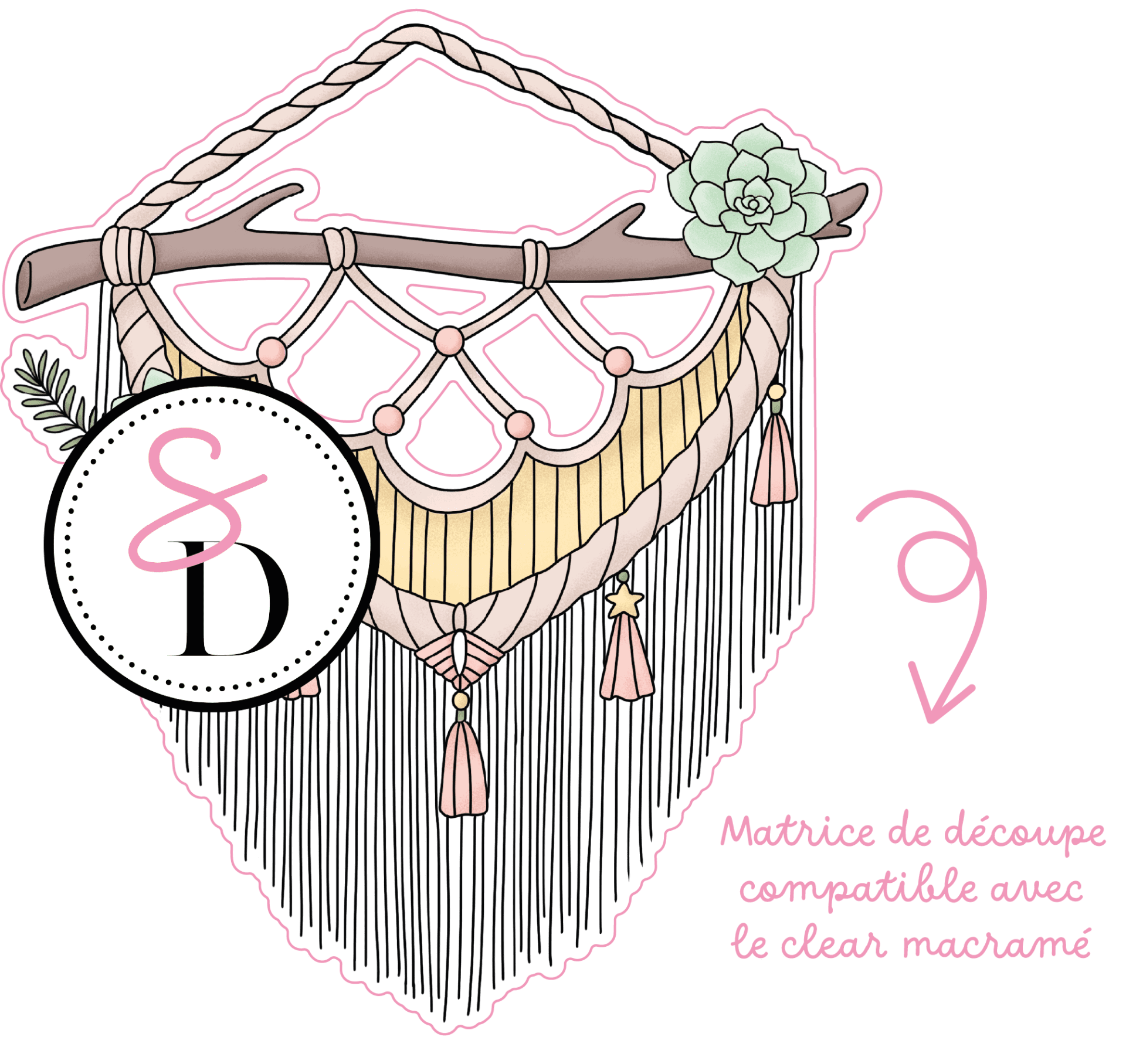 Duo die et tampon clear - Macramé bohème - Rêveries Bohémiennes
