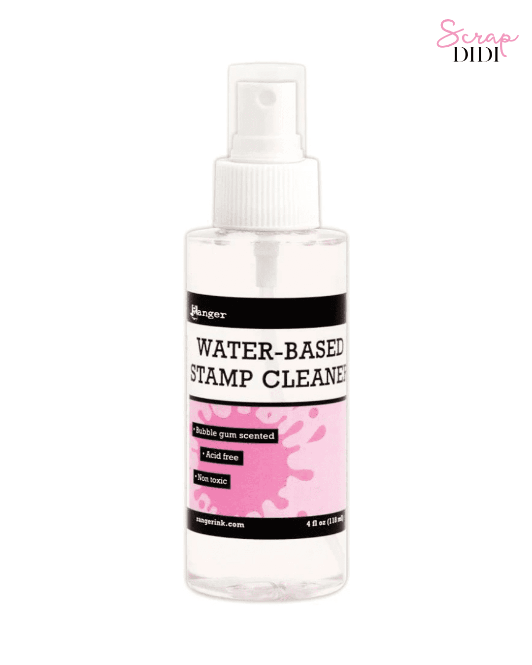 Liquide nettoyant Ranger pour tampons clear et caoutchouc. Idéal pour enlever les résidus d’encre et prolonger la durée de vie de tes tampons.