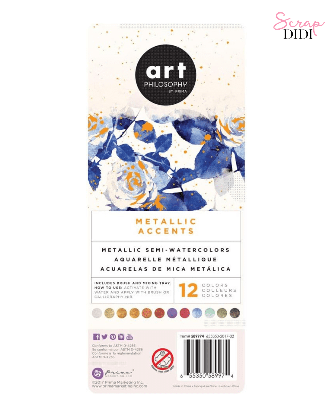 Le lot de peintures semi-aquarelles “Metallic Accents” de Prima Marketing offre une palette multicolore aux reflets métalliques intenses.