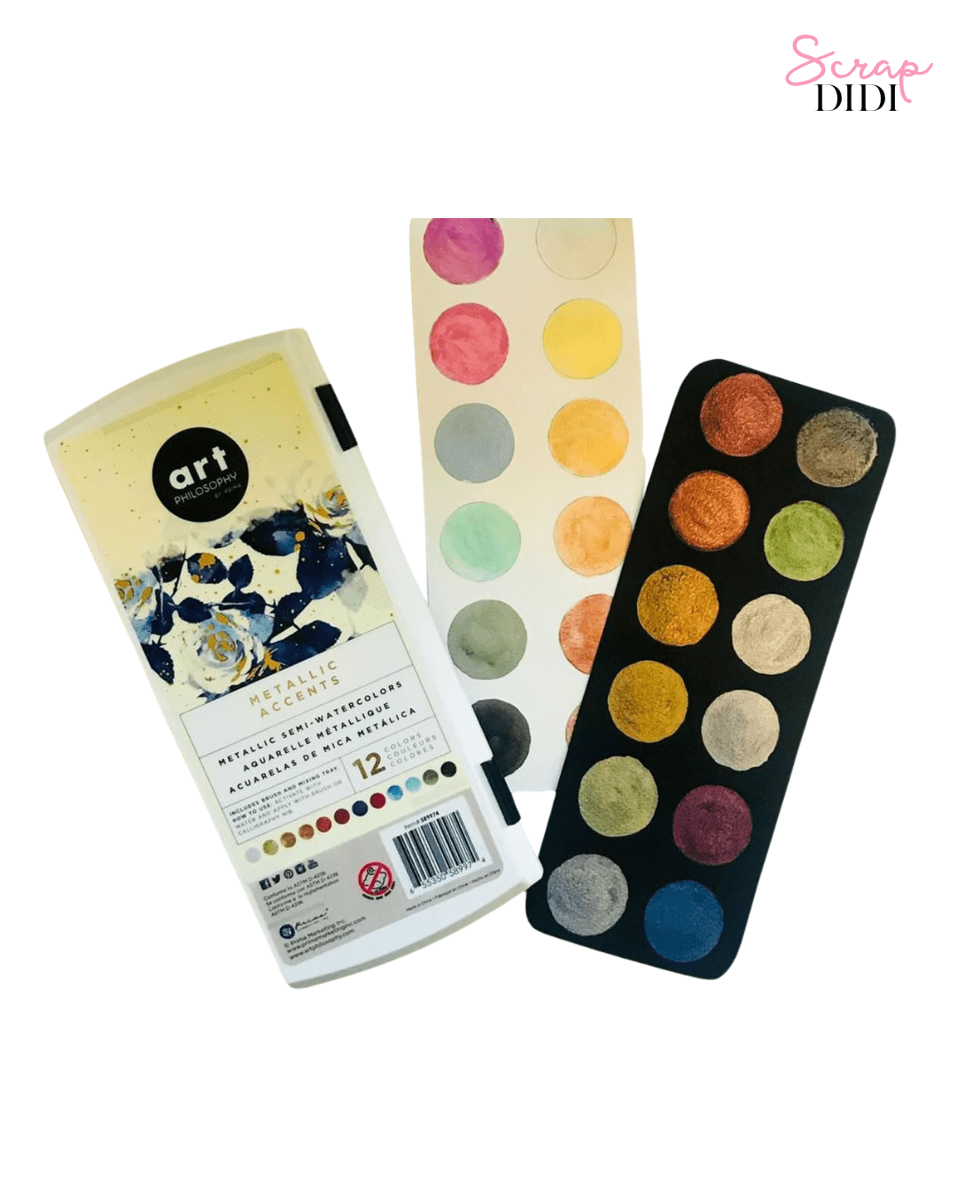 Lot Prima Marketing Metallic Accents : peintures semi-aquarelles métalliques multicolores. Idéal pour scrapbooking, carterie et mixed media.