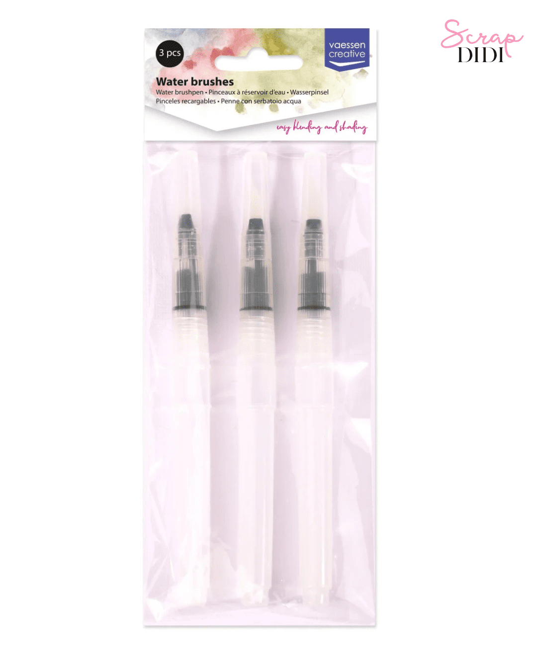 Lot de 3 pinceaux à eau Vaessen Creative avec réservoir intégré. Idéal pour aquarelle, Distress Oxide et scrapbooking.