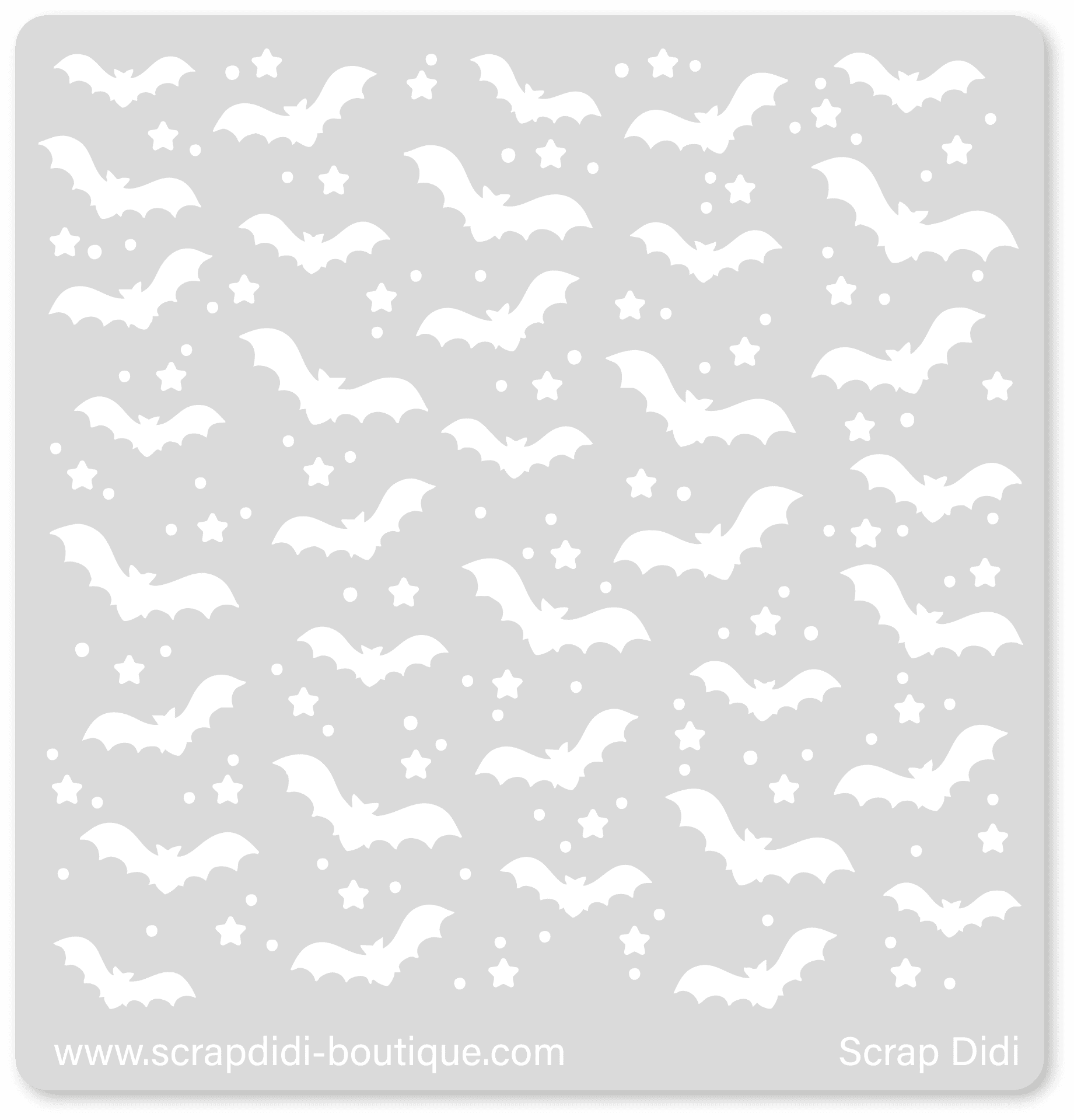 Réalisé en plastique souple, fin et résistant, ce pochoir permet de reproduire de petites chauves-souris détaillées en un clin d’œil. Son motif est idéal pour créer des fonds de page légers, des bordures ou des effets d’ambiance, seul ou en superposition avec d’autres motifs de la collection.